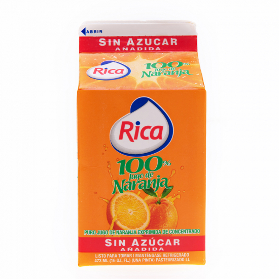 Jugo De Naranja Sin Azúcar 100% Rica 16 Onz